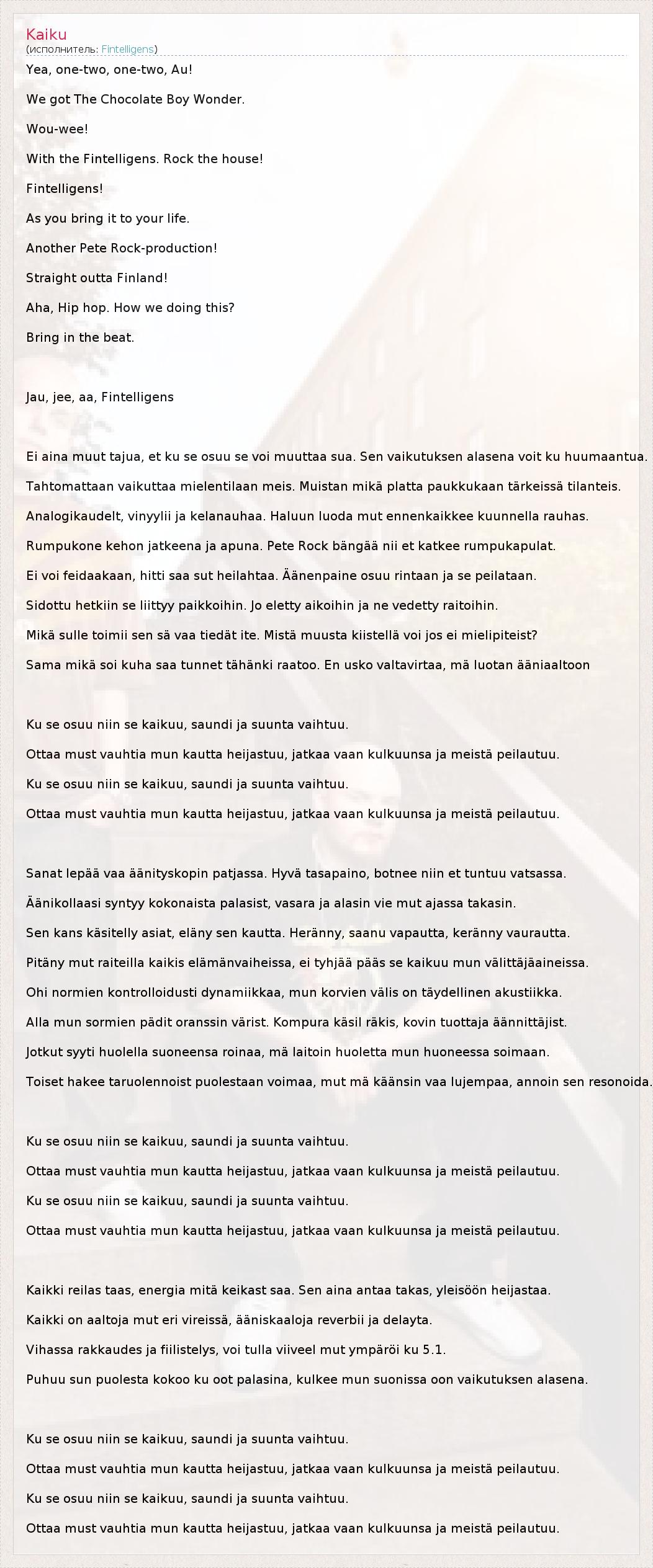 А как ты думаешь, о чем песня "Kaiku" ?