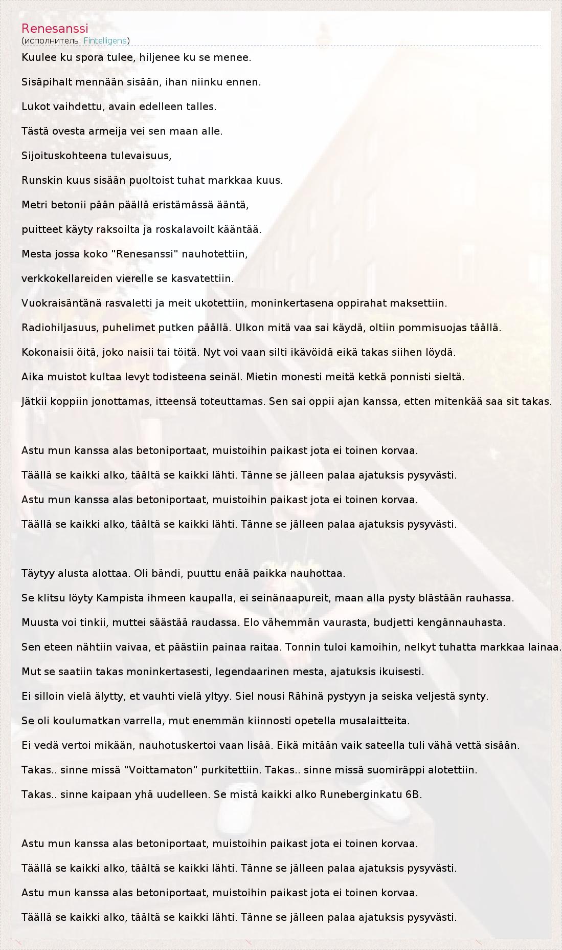 А как ты думаешь, о чем песня "Renesanssi" ?