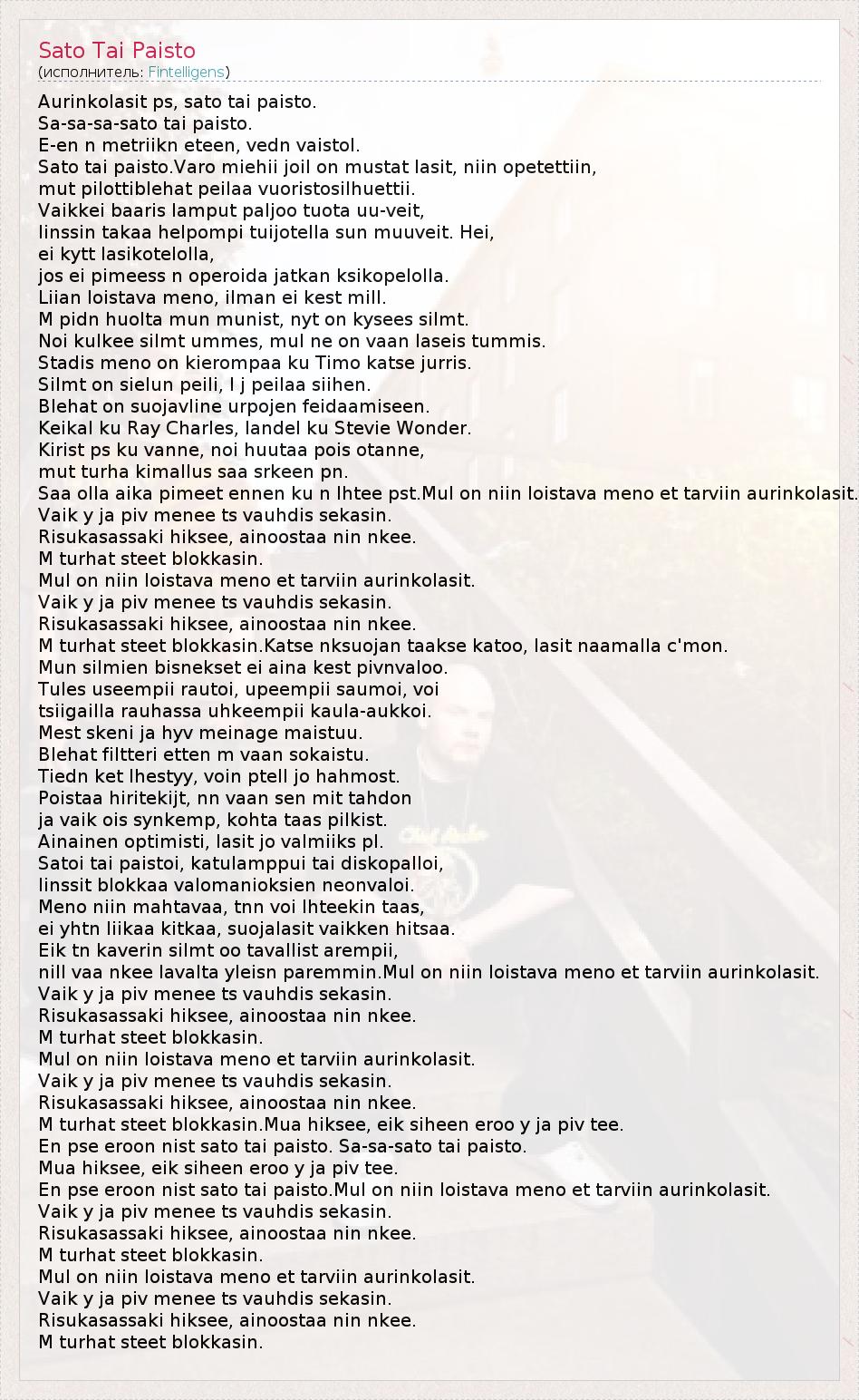А как ты думаешь, о чем песня "Sato Tai Paisto" ?