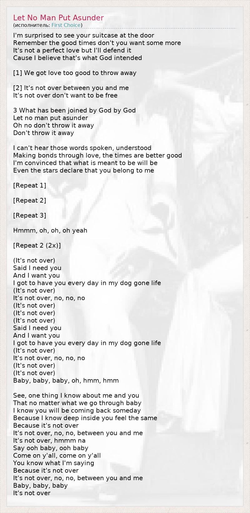 А как ты думаешь, о чем песня "Let No Man Put Asunder" ?