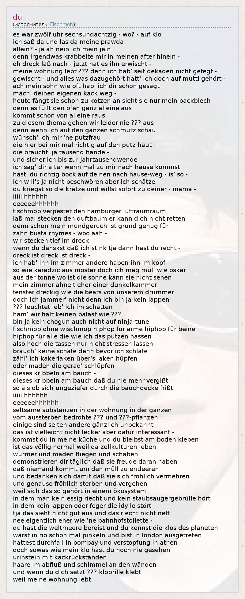 es war zwölf uhr sechsundachtzig - wo? - auf klo