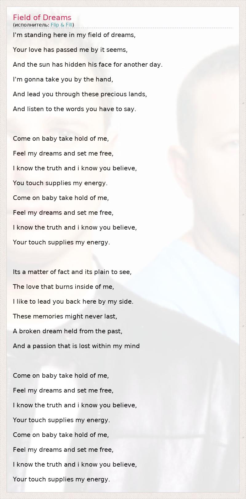 А как ты думаешь, о чем песня "Field of Dreams" ?
