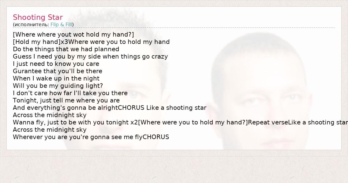 Wanna fly, just to be with you tonight x2[Where were you to hold my hand?]Repeat verseLike a shooting star