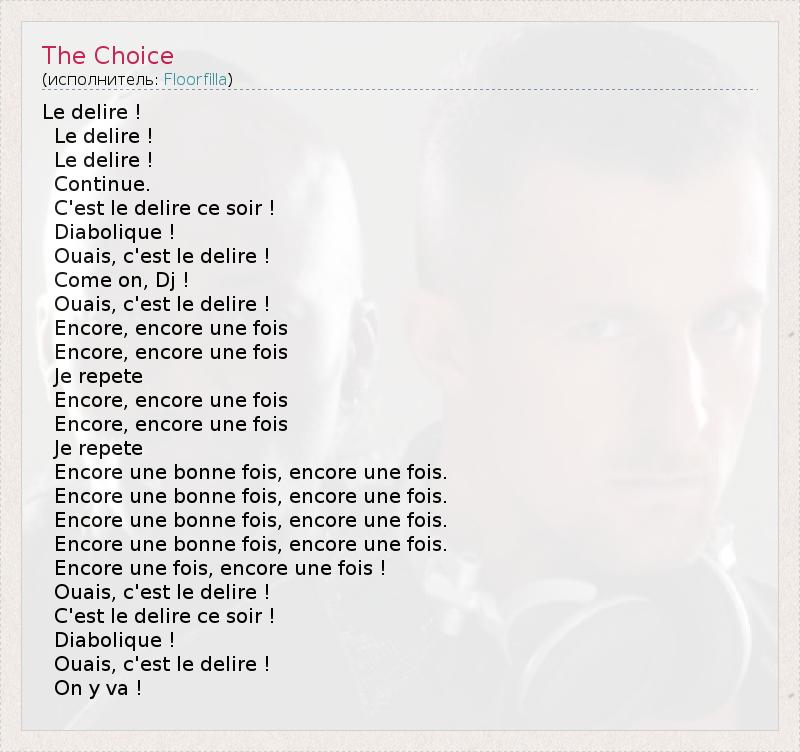 А как ты думаешь, о чем песня "The Choice" ?