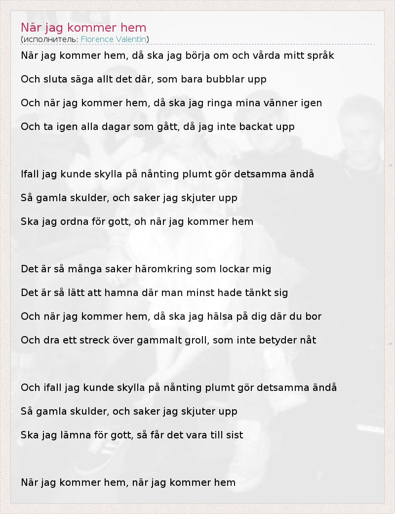 А как ты думаешь, о чем песня "När jag kommer hem" ?
