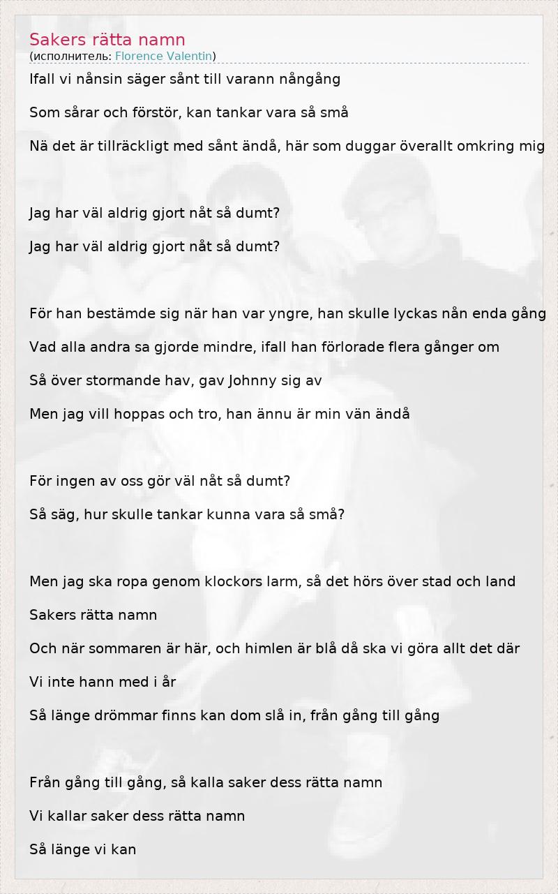 А как ты думаешь, о чем песня "Sakers rätta namn" ?