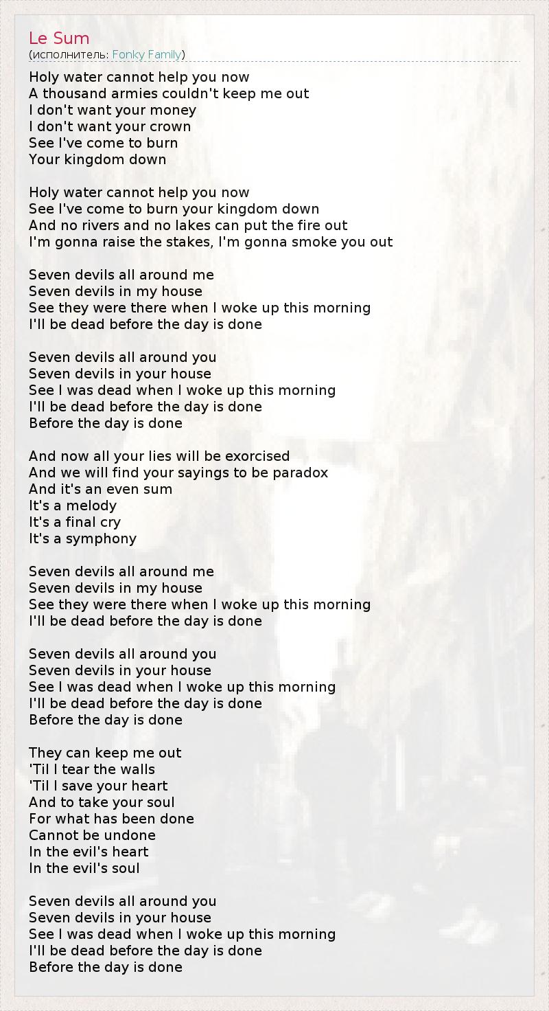Это интересно:Fonky Family - французский хип-хоп квартет, базирующийся в самом «черном» городе Франции, Марселе. Их первые записи появились в 1995-м, а дебютный альбом «Si Dieu Veut» (1997) получил статус «золотого». На следующий год знаменитый режиссер Люк Бессон предложил им написать музыку к его последнему фильму «Taxi» - так группа стала международно известной, изрядно поспособствовав росту интереса к французскому... продолжение