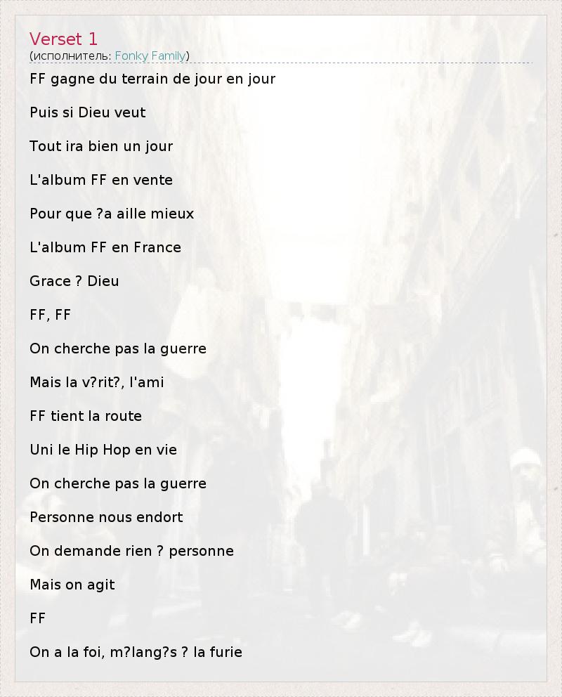 Это интересно:Fonky Family - французский хип-хоп квартет, базирующийся в самом «черном» городе Франции, Марселе. Их первые записи появились в 1995-м, а дебютный альбом «Si Dieu Veut» (1997) получил статус «золотого». На следующий год знаменитый режиссер Люк Бессон предложил им написать музыку к его последнему фильму «Taxi» - так группа стала международно известной, изрядно поспособствовав росту интереса к французскому... продолжение