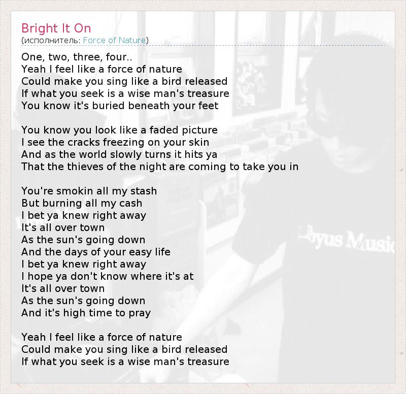 Это интересно:В состав Force of Nature входят два друга KZA и DJ Kent, знакомых очень давно, и оба они имеют одинаковые музыкальные вкусы. KZA считается виниловым наркоманом, который смог приобрести огромную коллекцию записей на протяжении многих лет, позволяя ему иметь музыку большого разнообразия в его кончиках пальцев. Другая сторона Force of Nature DJ Kent на протяжении многих лет развивал свой уникальный звуковой... продолжение
