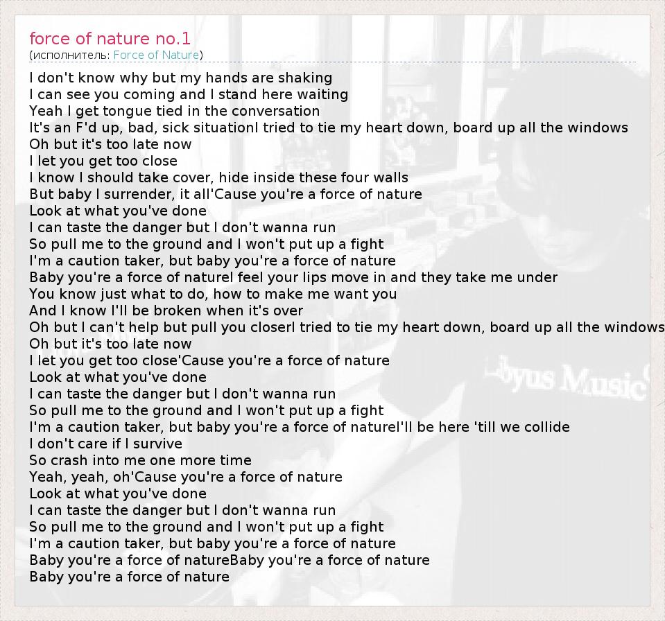 А как ты думаешь, о чем песня "force of nature no.1" ?