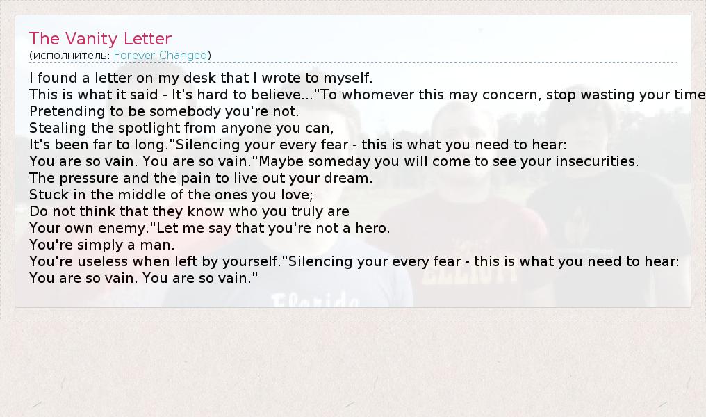 А как ты думаешь, о чем песня "The Vanity Letter" ?