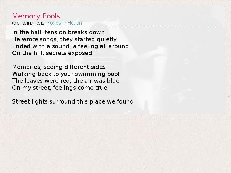 А как ты думаешь, о чем песня "Memory Pools" ?