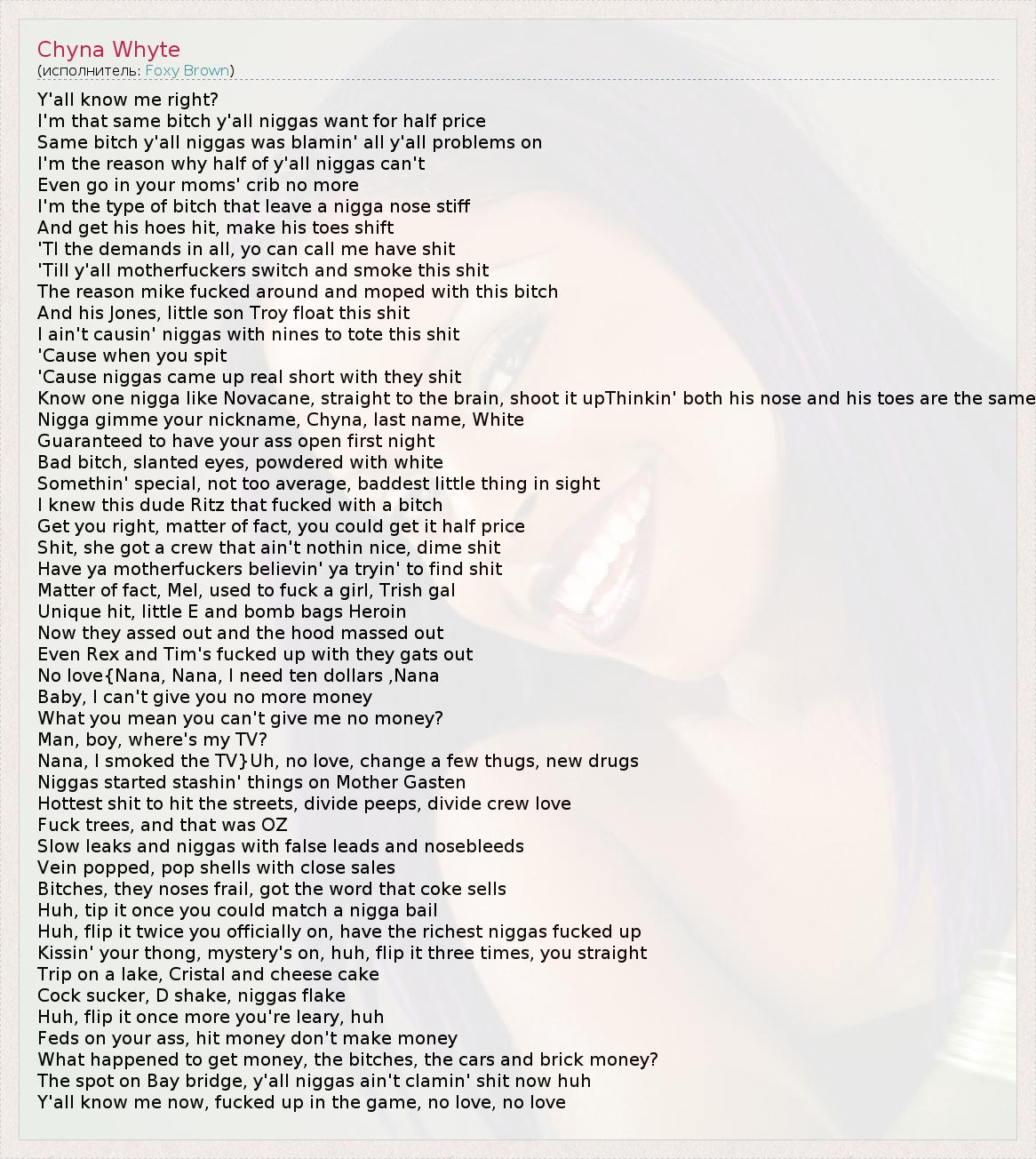 А как ты думаешь, о чем песня "Chyna Whyte" ?