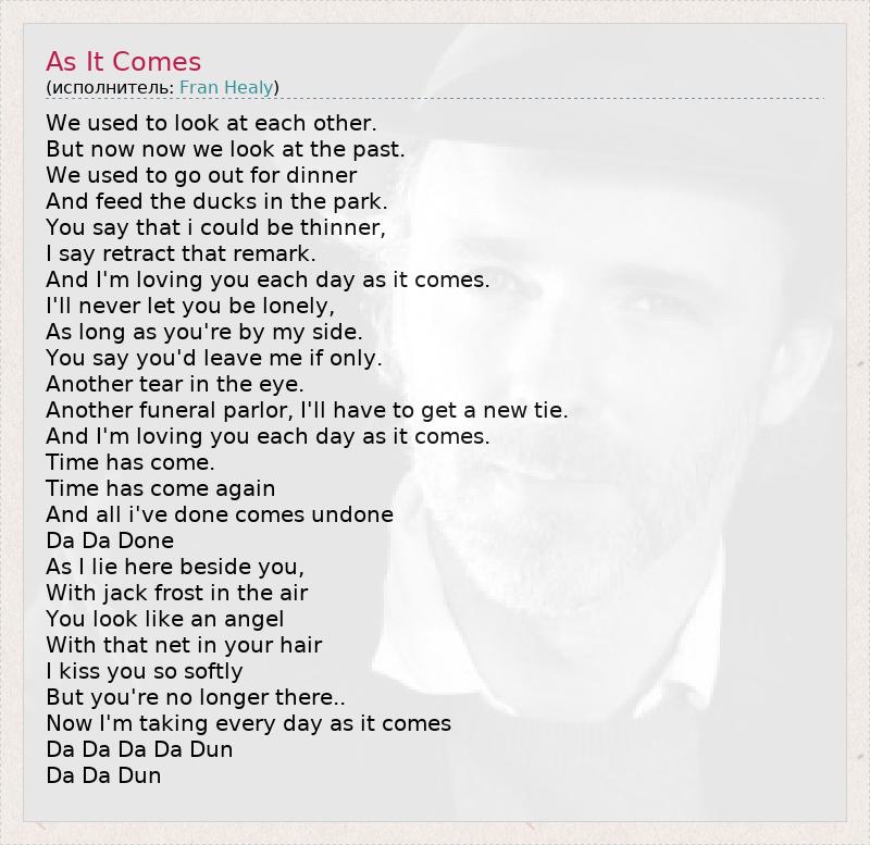 Это интересно:Fran Healy - британский рок-музыкант, солист группы Travis. Для их семи альбомов он написал почти все песни.4 октября 2010 Фрэнк выпустил сольник, “Wreckorder”, на своем лэйбле WreckordLabel. Альбом записывался в Берлине, где сейчас живет музыкант, и в Нью-Йорке, а в окончательное состояние приведен в Вермонте. В записи альбома участвовали Paul McCartney, Neko... продолжение
