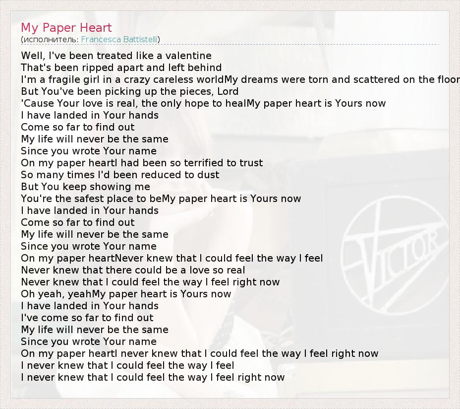 А как ты думаешь, о чем песня "My Paper Heart" ?