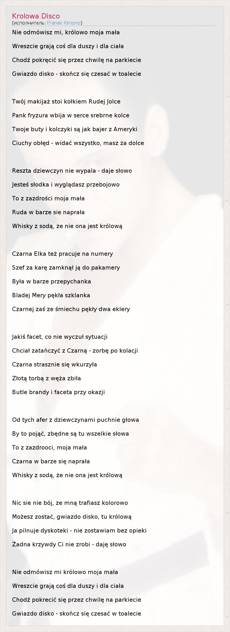 А как ты думаешь, о чем песня "Krolowa Disco" ?