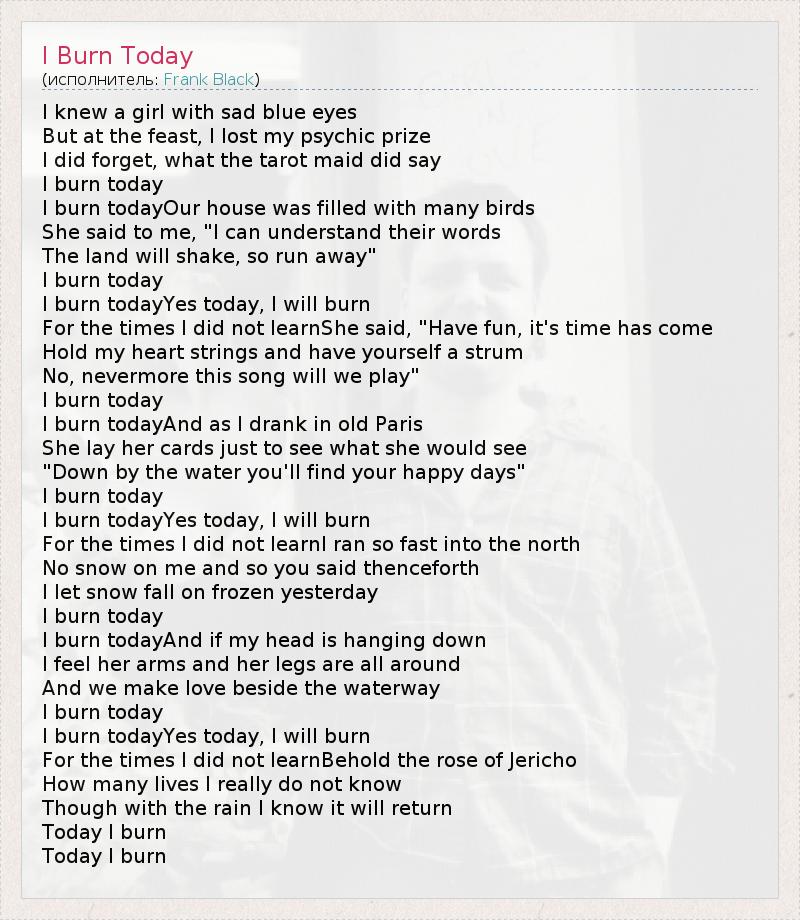 А как ты думаешь, о чем песня "I Burn Today" ?