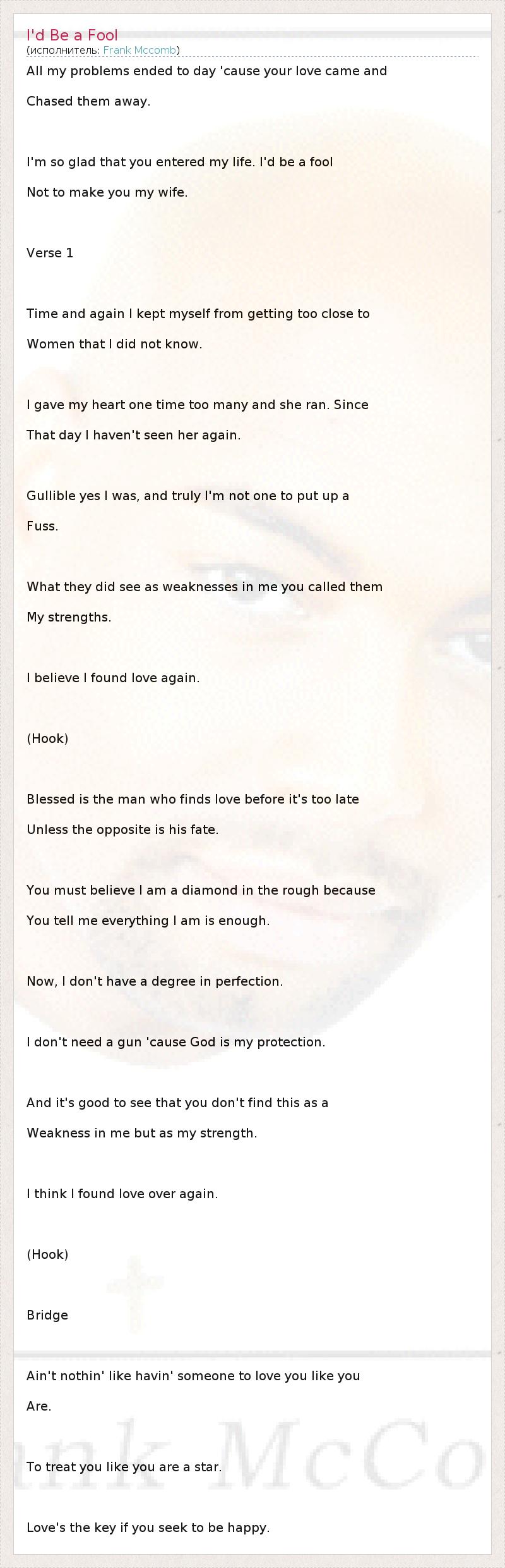 А как ты думаешь, о чем песня "I'd Be a Fool" ?