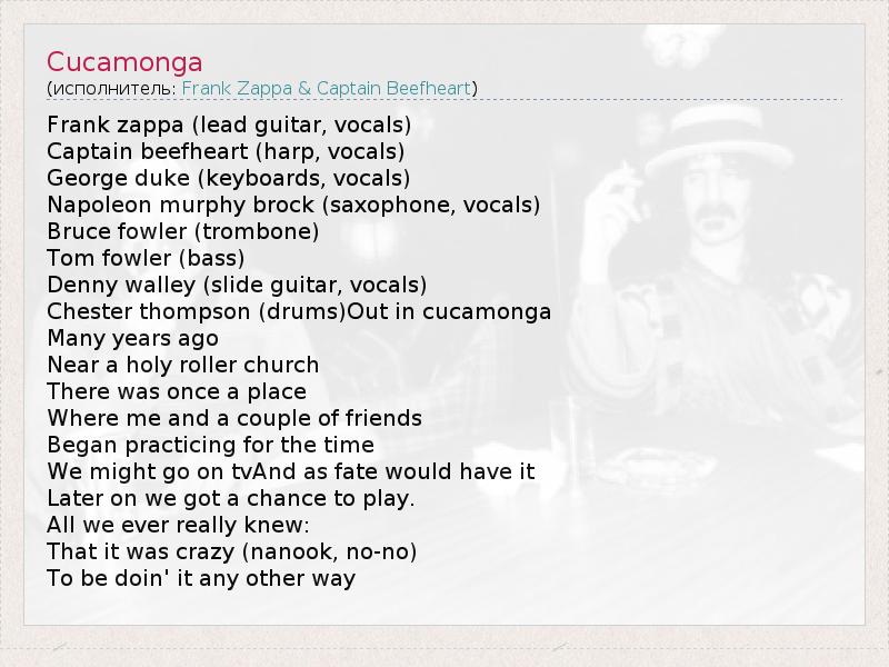 А как ты думаешь, о чем песня "Cucamonga" ?