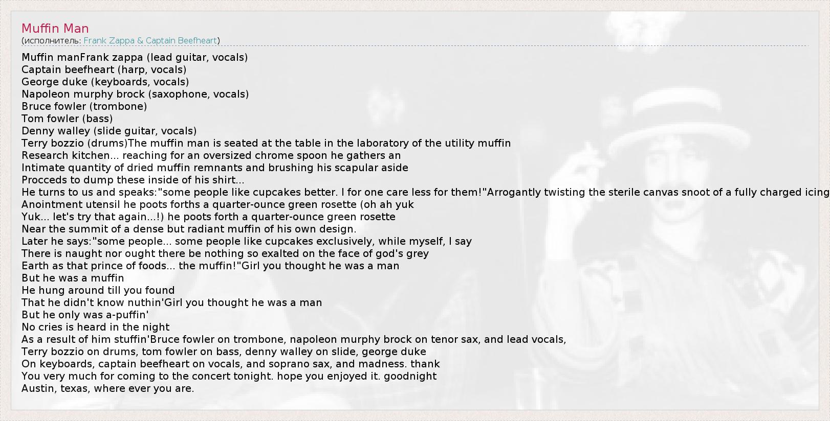 On keyboards, captain beefheart on vocals, and soprano sax, and madness. thank