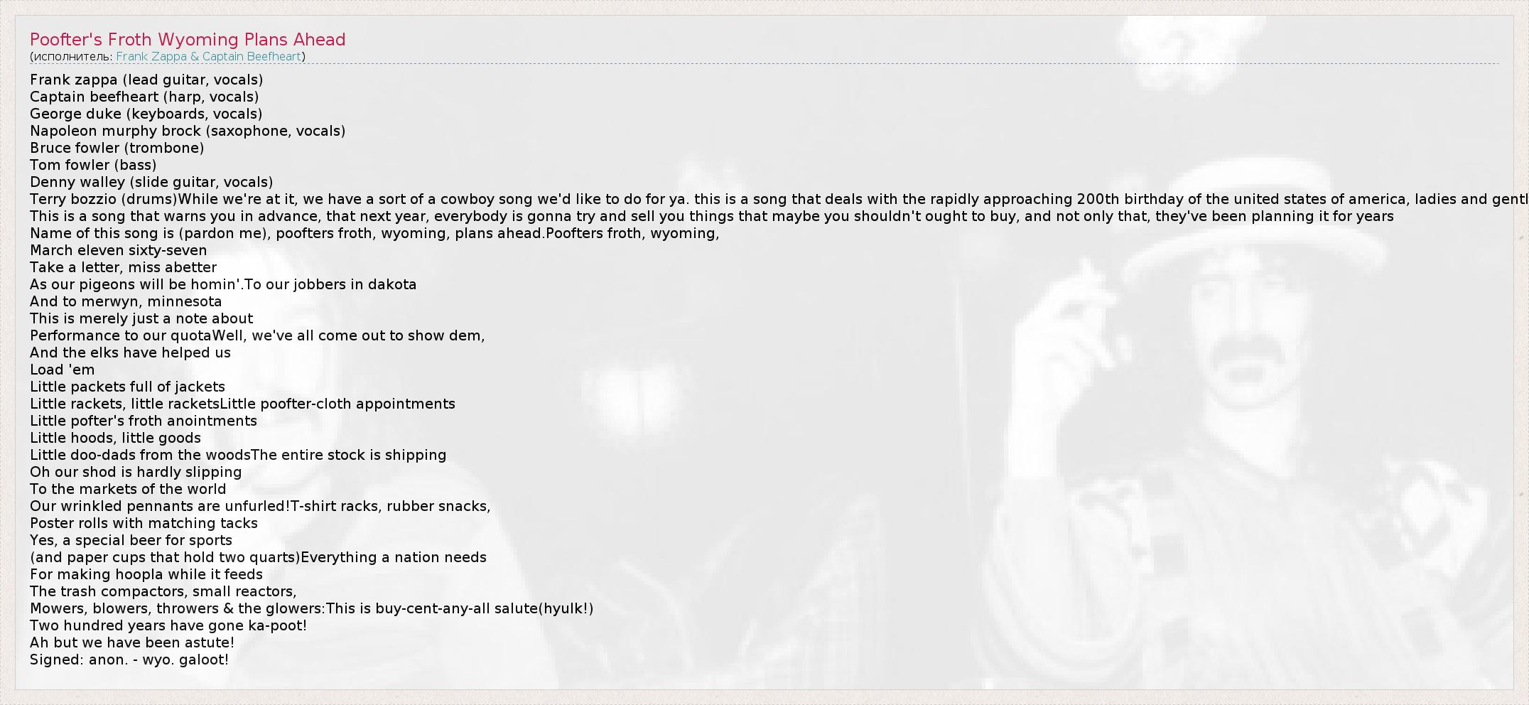 А как ты думаешь, о чем песня "Poofter's Froth Wyoming Plans Ahead" ?