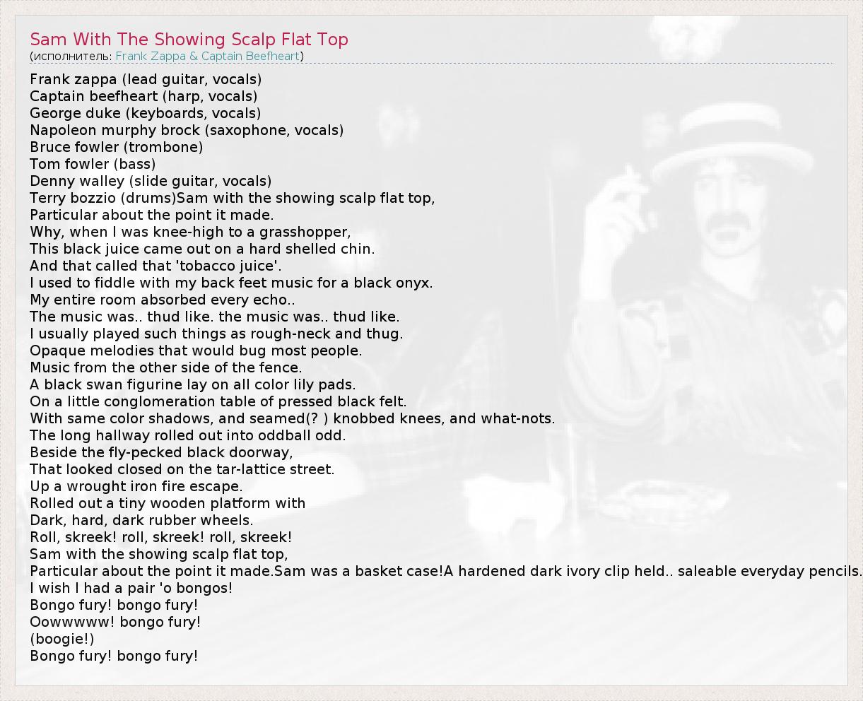 А как ты думаешь, о чем песня "Sam With The Showing Scalp Flat Top" ?