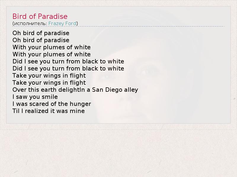 А как ты думаешь, о чем песня "Bird of Paradise" ?