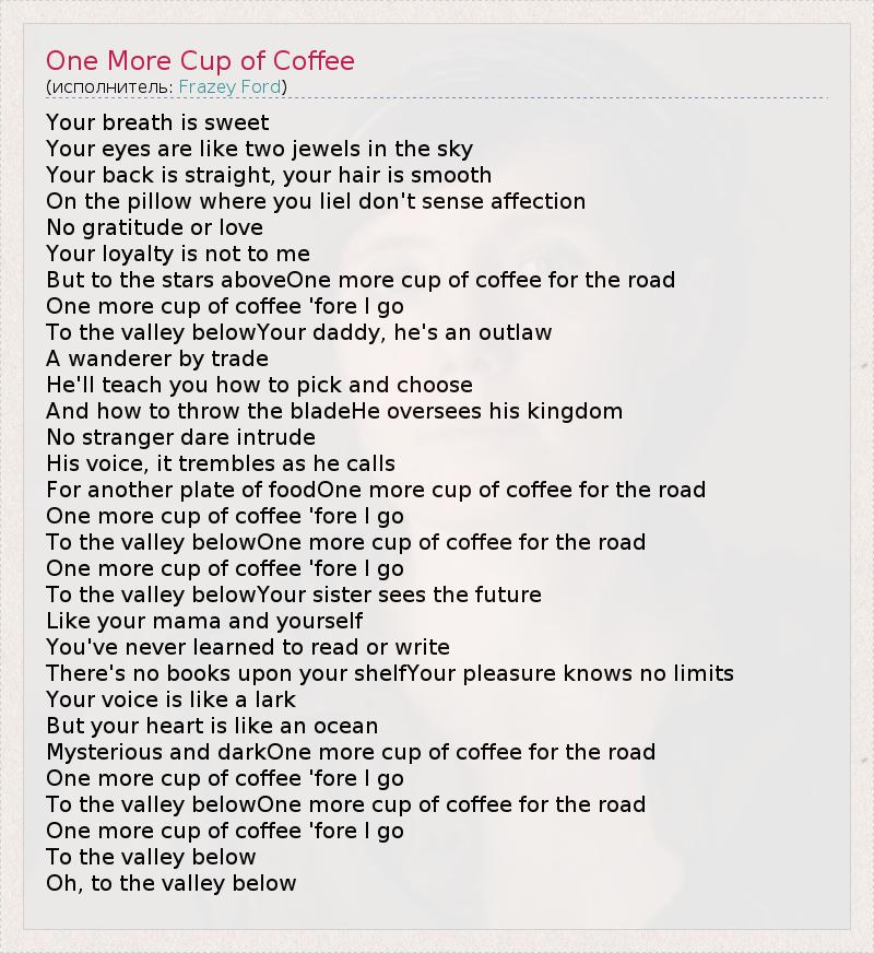 А как ты думаешь, о чем песня "One More Cup of Coffee" ?