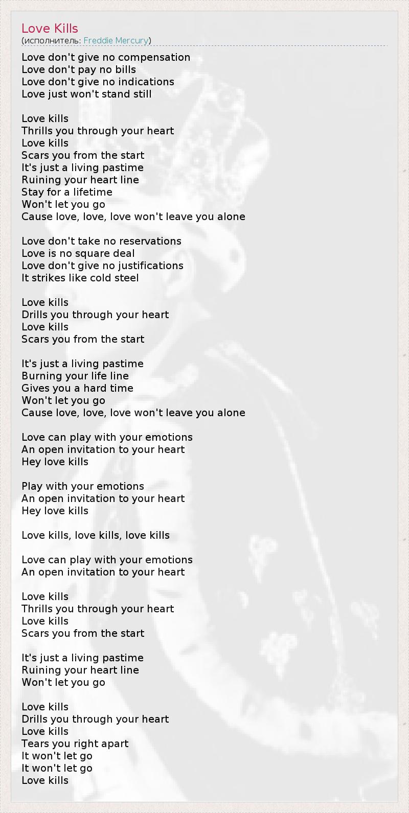 Любовь убивает, любовь убивает, любовь убивает.
