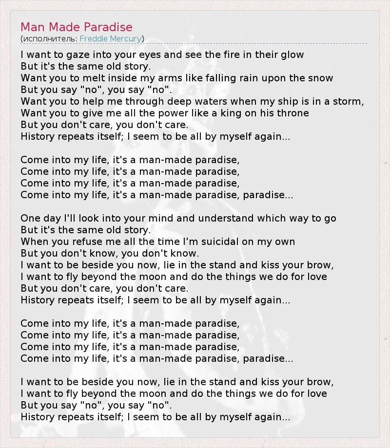 А как ты думаешь, о чем песня "Man Made Paradise" ?