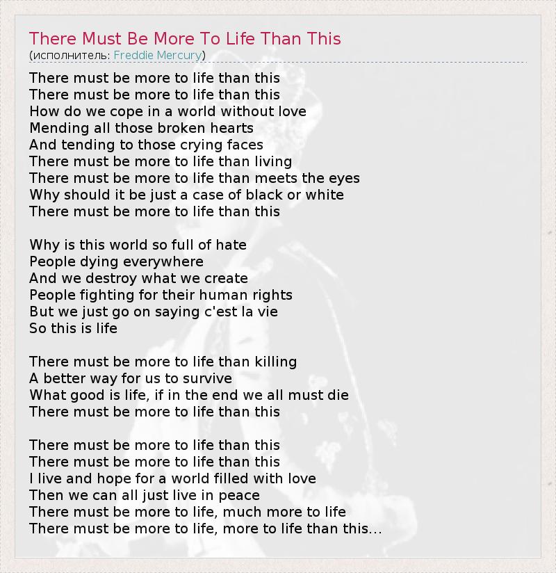 А как ты думаешь, о чем песня "There Must Be More To Life Than This" ?