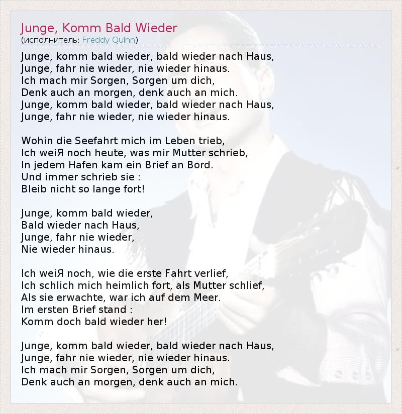 ГлавнаяИсполнителиFreddy QuinnJunge, Komm Bald Wieder