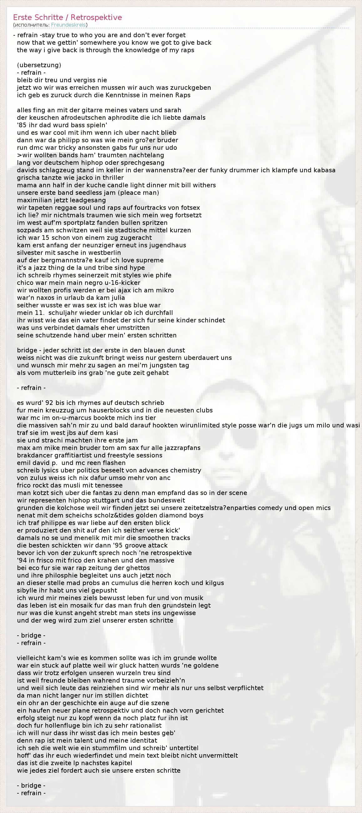 ГлавнаяИсполнителиFreundeskreisErste Schritte / Retrospektive