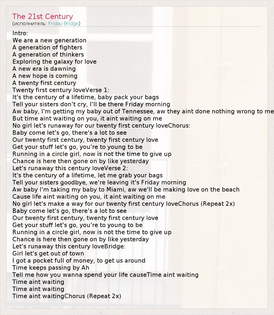 А как ты думаешь, о чем песня "The 21st Century" ?