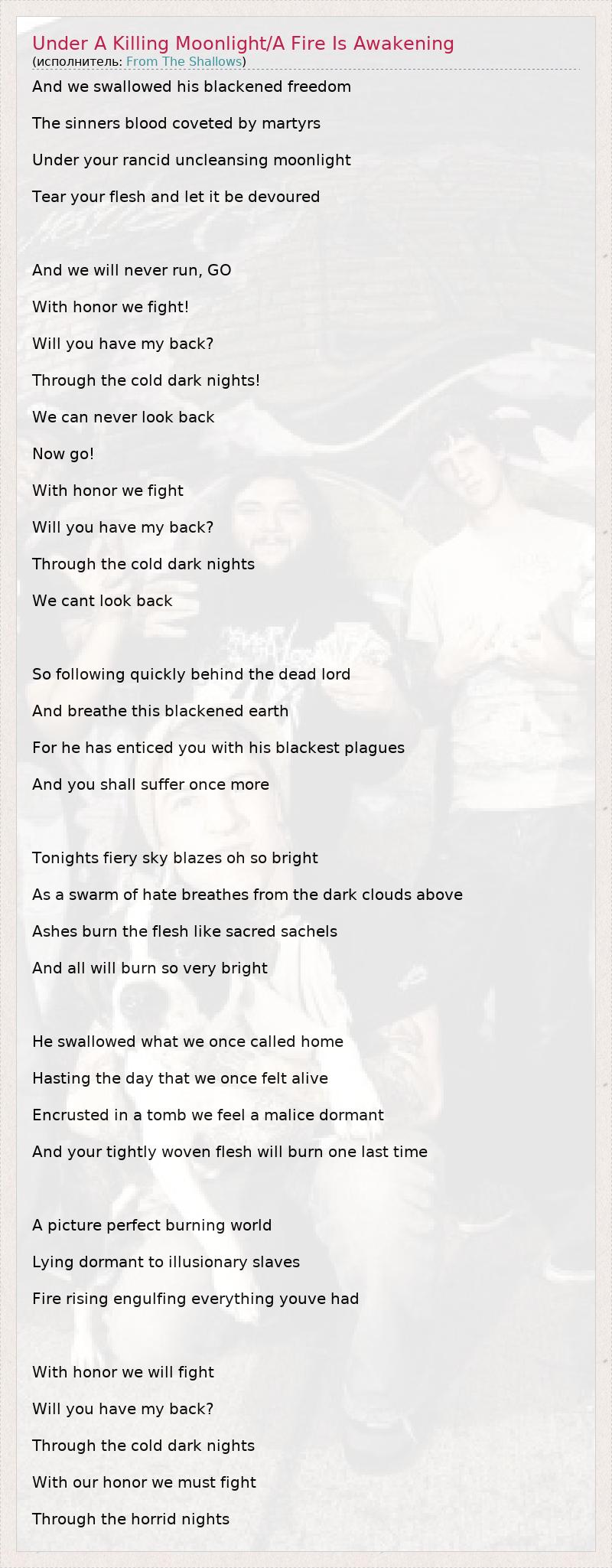 ГлавнаяИсполнителиFrom The ShallowsUnder A Killing Moonlight/A Fire Is Awakening