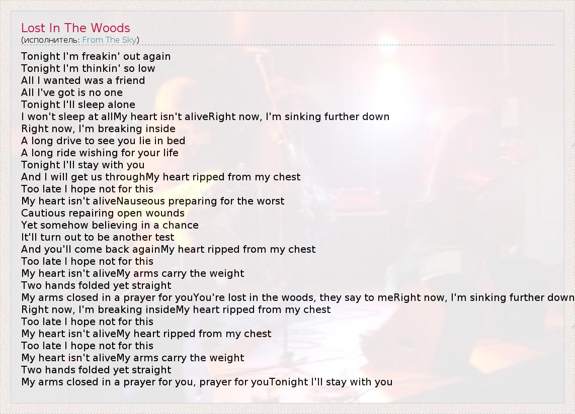 А как ты думаешь, о чем песня "Lost In The Woods" ?