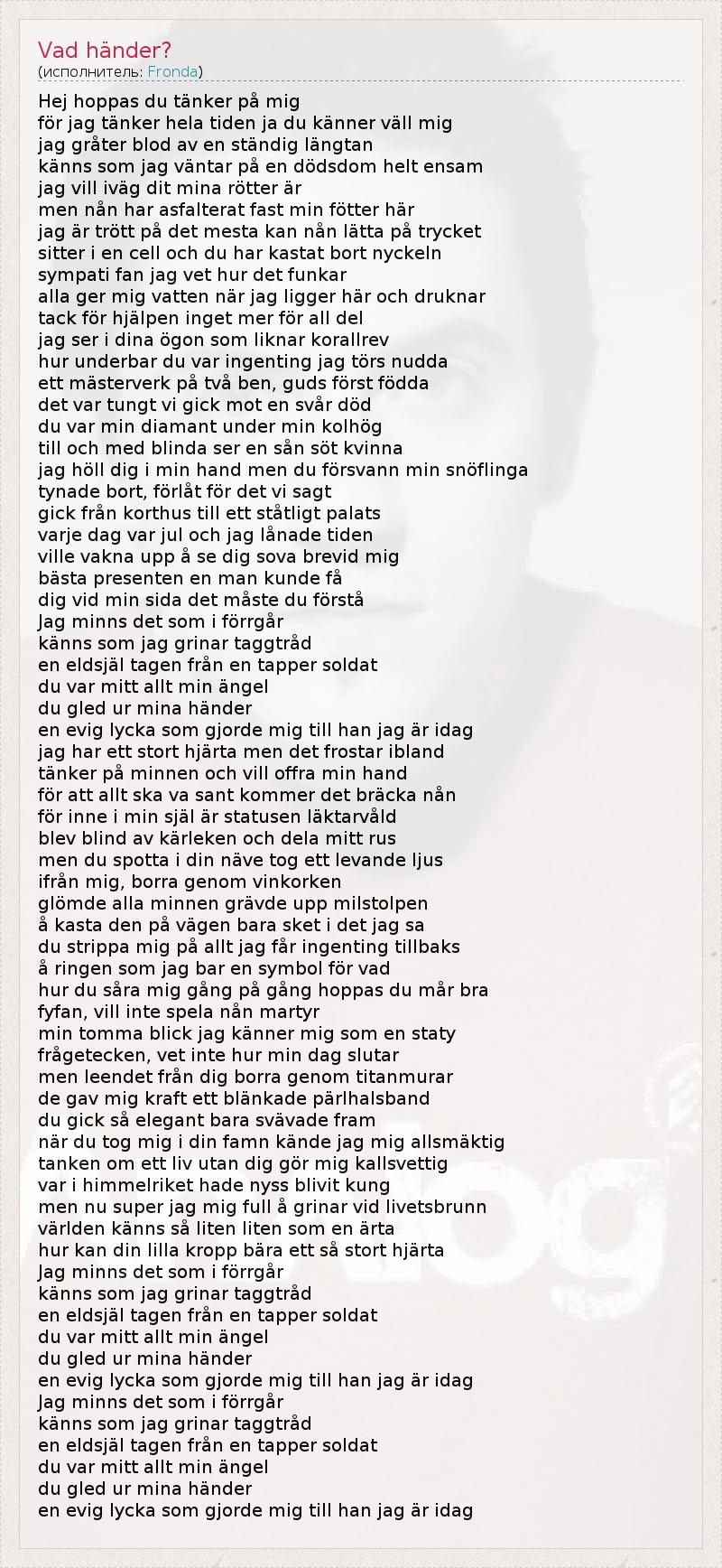 А как ты думаешь, о чем песня "Vad händer?" ?