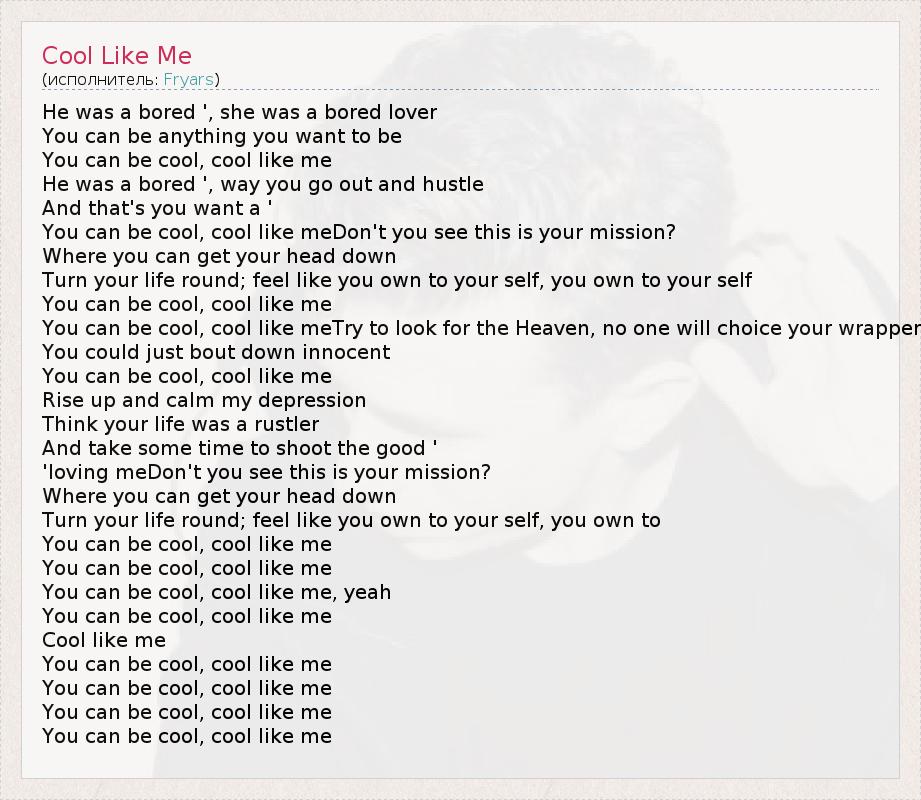 А как ты думаешь, о чем песня "Cool Like Me" ?