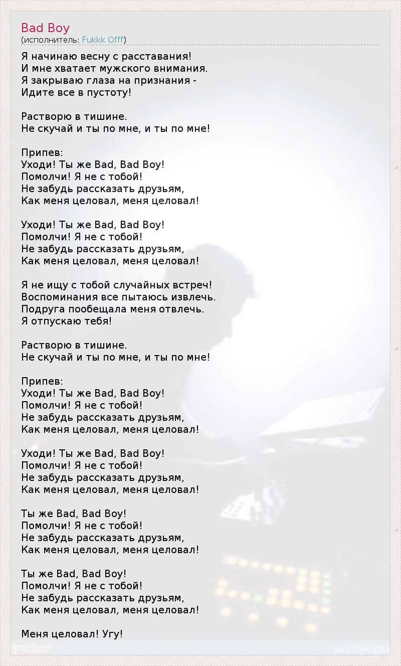 А как ты думаешь, о чем песня "Bad Boy" ?