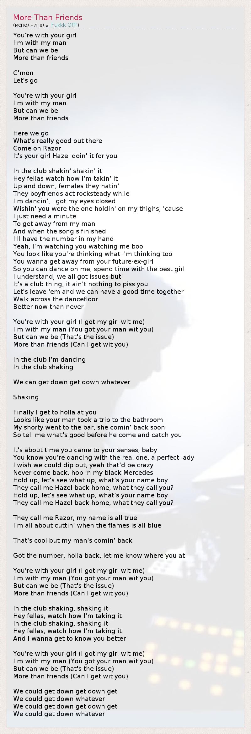 А как ты думаешь, о чем песня "More Than Friends" ?