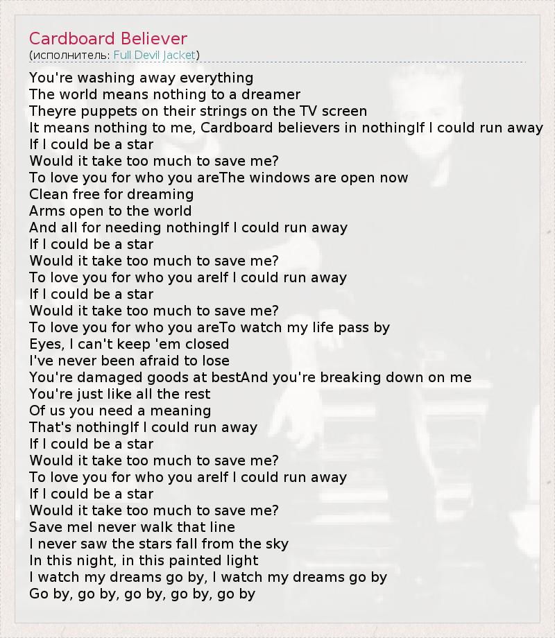 А как ты думаешь, о чем песня "Cardboard Believer" ?