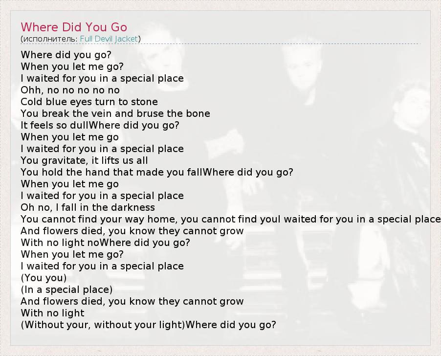 А как ты думаешь, о чем песня "Where Did You Go" ?