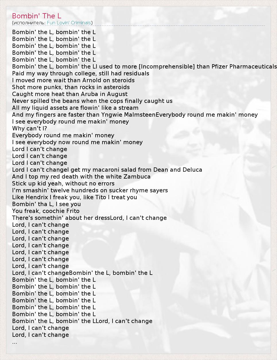 А как ты думаешь, о чем песня "Bombin' The L" ?