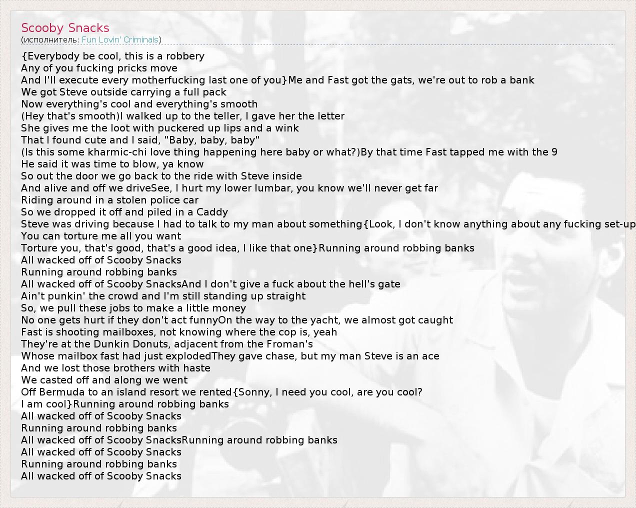 А как ты думаешь, о чем песня "Scooby Snacks" ?