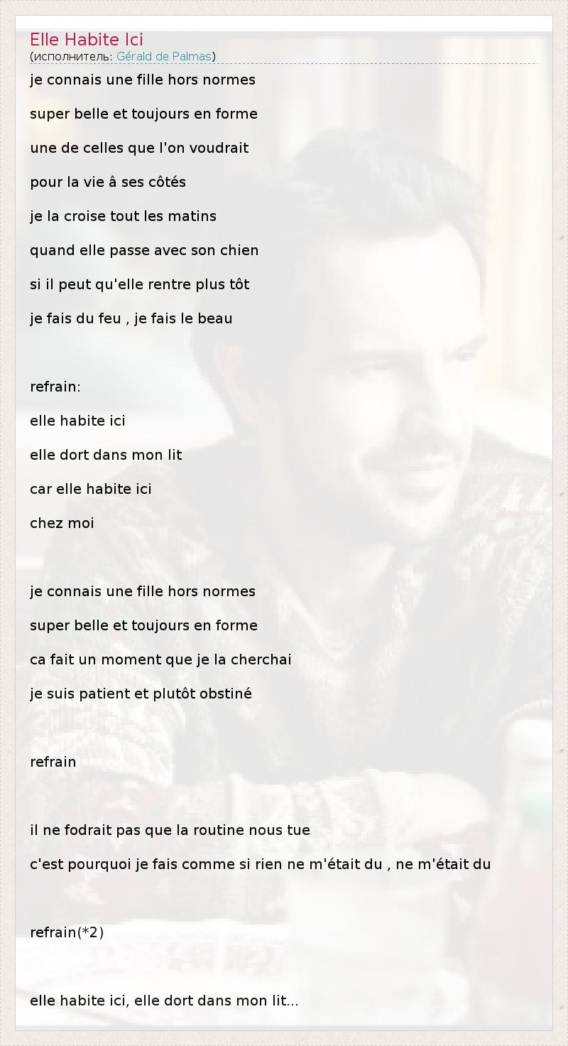 А как ты думаешь, о чем песня "Elle Habite Ici" ?