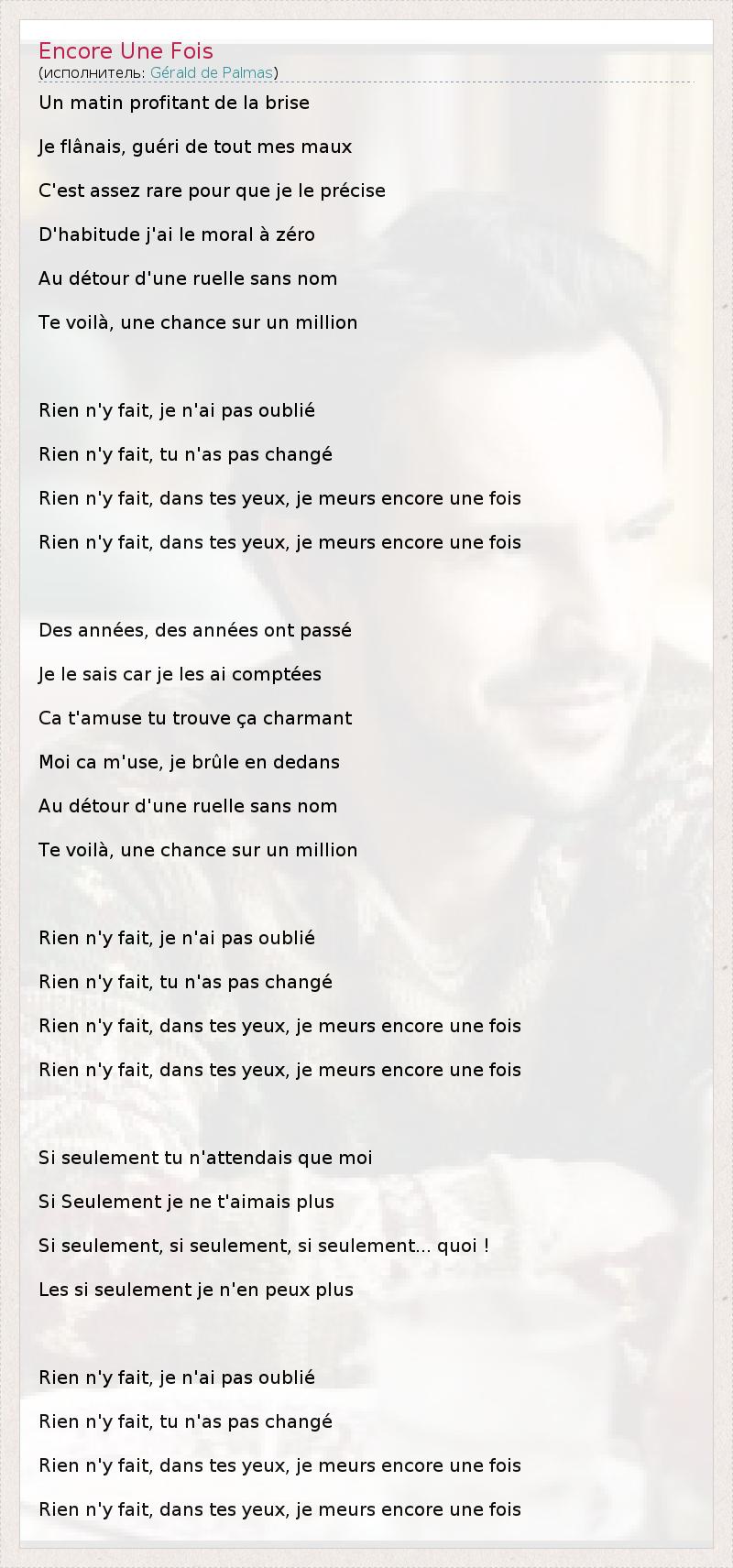А как ты думаешь, о чем песня "Encore Une Fois" ?