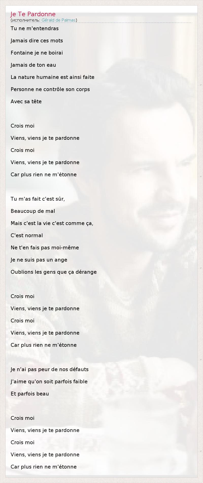 А как ты думаешь, о чем песня "Je Te Pardonne" ?