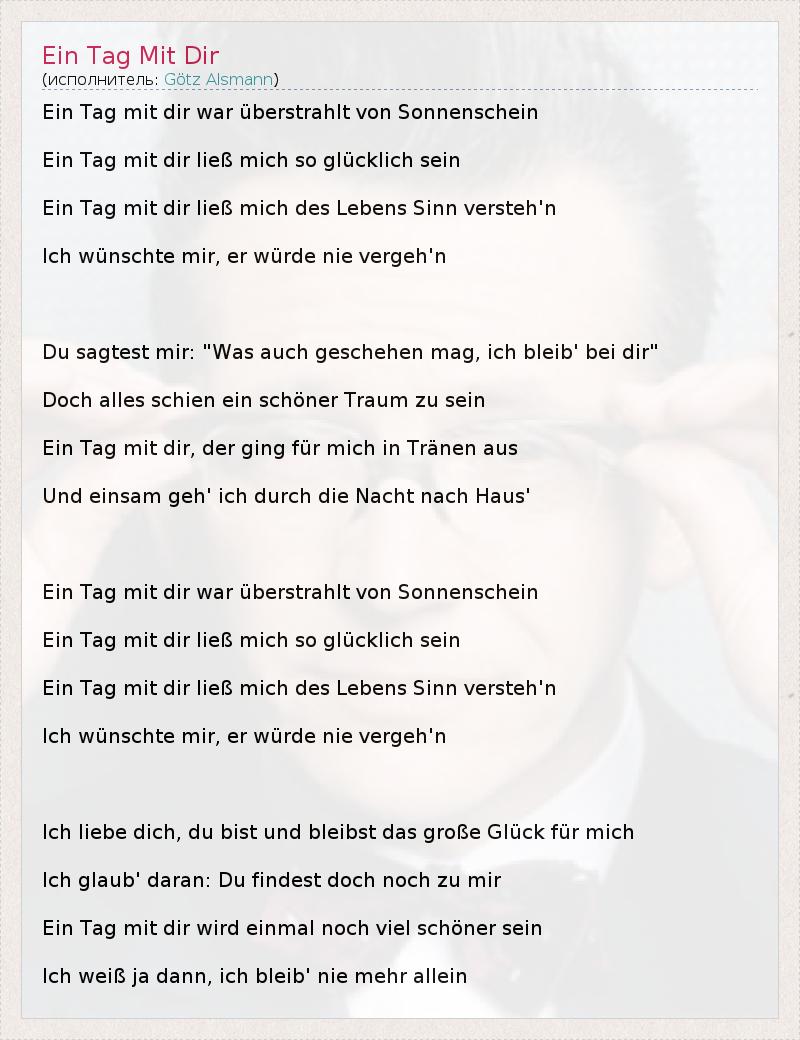А как ты думаешь, о чем песня "Ein Tag Mit Dir" ?