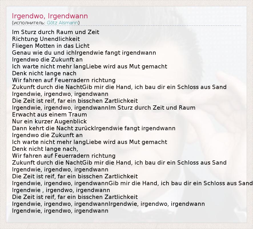 А как ты думаешь, о чем песня "Irgendwo, Irgendwann" ?