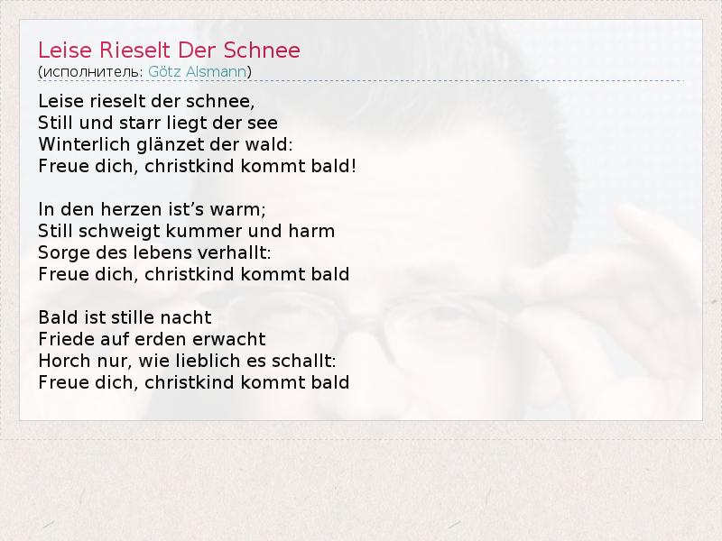 ГлавнаяИсполнителиGötz AlsmannLeise Rieselt Der Schnee